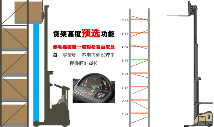 二、方便的货架高度预选功能,高位取/放货轻松高效