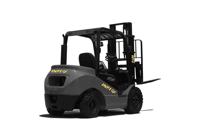 英菲柴油叉车独特的技术,车辆熄火时,叉车驻车制动自动启动。