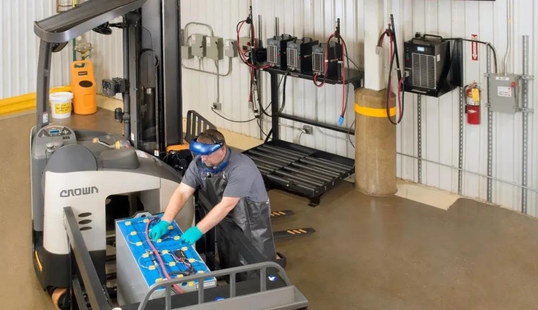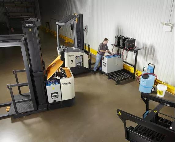 因此,电池液位需要经常检查,确保每个电池单体内的液位都处于正常水平。电池中水的消耗跟使用频率有关,仓库管理者应该根据叉车的使用强度,制定电池检查规范。
