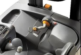传统叉车的操作杆,虽然功能全面,但操作起来却没有那么方便,需要频繁切换动作,长时间下来,难免有些费时费力。