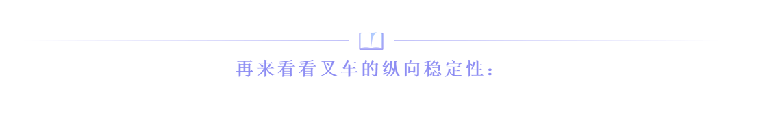 叉车的纵向稳定性,是考查叉车抵抗向前倾翻的能力,主要是堆垛。一个物体是否稳定,取决于这个物体在系统一端产生的重力矩是大于、等于还是小于这个物体在该系统另一端产生的重力矩。载荷到叉车支点的矩等于叉车在支点另一端产生的矩,那么整个车辆是平衡的并且不会移动。否则,如果在支点一端的力矩大,车辆将会移向力矩大的一端。载荷产生的力矩小于叉车重量产生的力矩时,叉车是稳定的,不会向前倾翻;载荷产生的力矩大于叉车重量产生的力矩时,较大的载荷力矩将迫使叉车向前倾翻。