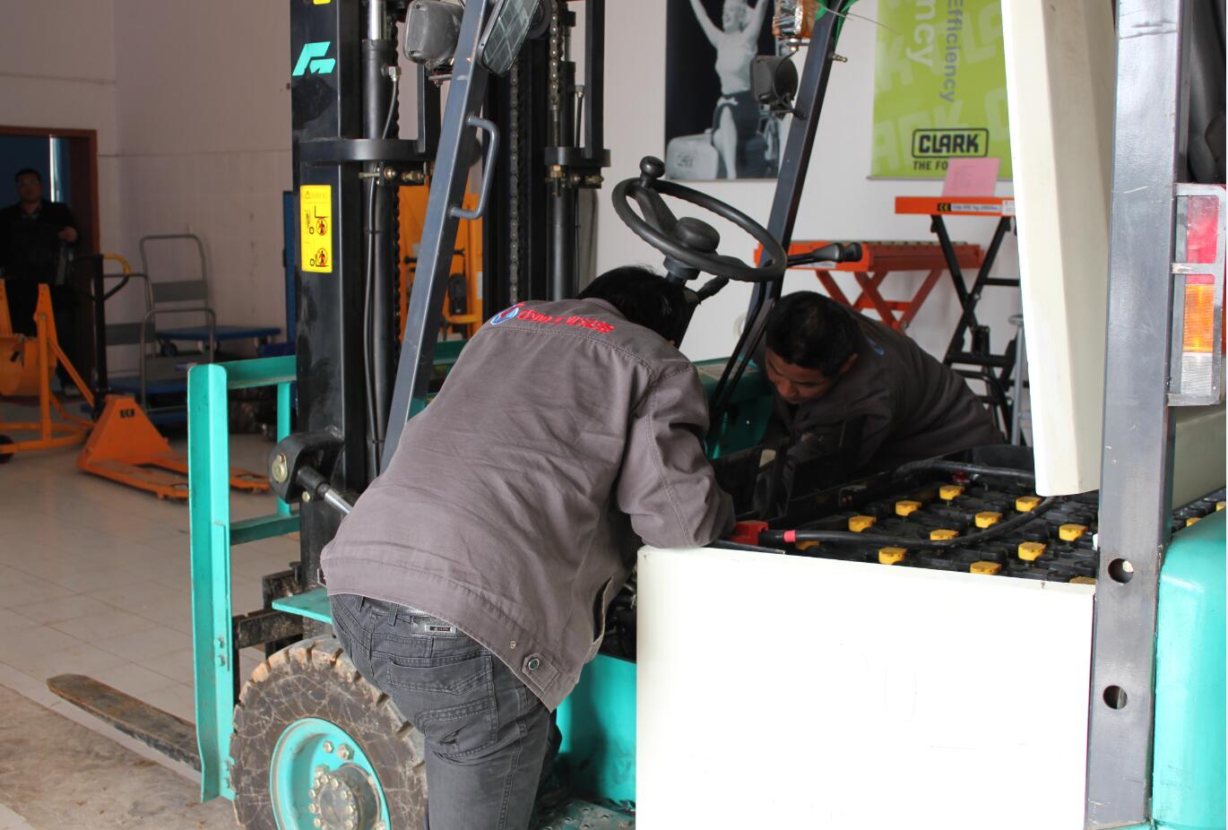 我公司的售后人员去客户现场检查发现:升降功能正常,电量表显示正常,无低电状况,驱动轮一动不动。我们把驱动系统拆下来连接上另外一辆一模一样的堆高车上,发现,驱动轮总成正常工作,所以排除了驱动部分的故障。再来研究加速器方面的问题,堆高车手柄上调节前后驱动的旋转把件我们称之为加速器,用来控制驱动电机的转速和方向。用万用表测试发现各个地方均是正常,无不良短路或者断路的情况。再看控制器方面的问题,因为全电动堆高车的液压系统不经过控制器控制,只是直接连接液压电机泵站总成控制油路,所以液压系统正常的话,那么驱动系统的故障很可能出现在驱动控制器这块。控制器容易出现的故障就是高温烧坏,加之以最近长时间的高温天气,室外温度甚至达到了50度以上,严重影响控制器的正常散热。同时,控制器长时间的通电工作,也会造成持续的发热,当温度超过一定的限度那么内部的线路很可能就烧断路了。如果控制器出现故障,那么最快的维修方法就是更换控制器。因为控制器是精密器件,非行业专业人士,是修不好的。所以是先解决了客户的使用问题再说了。