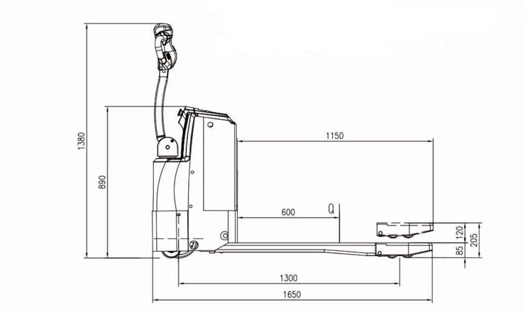 它以蓄电池为动力,电机驱动行走、提升,操纵手柄集中控制;