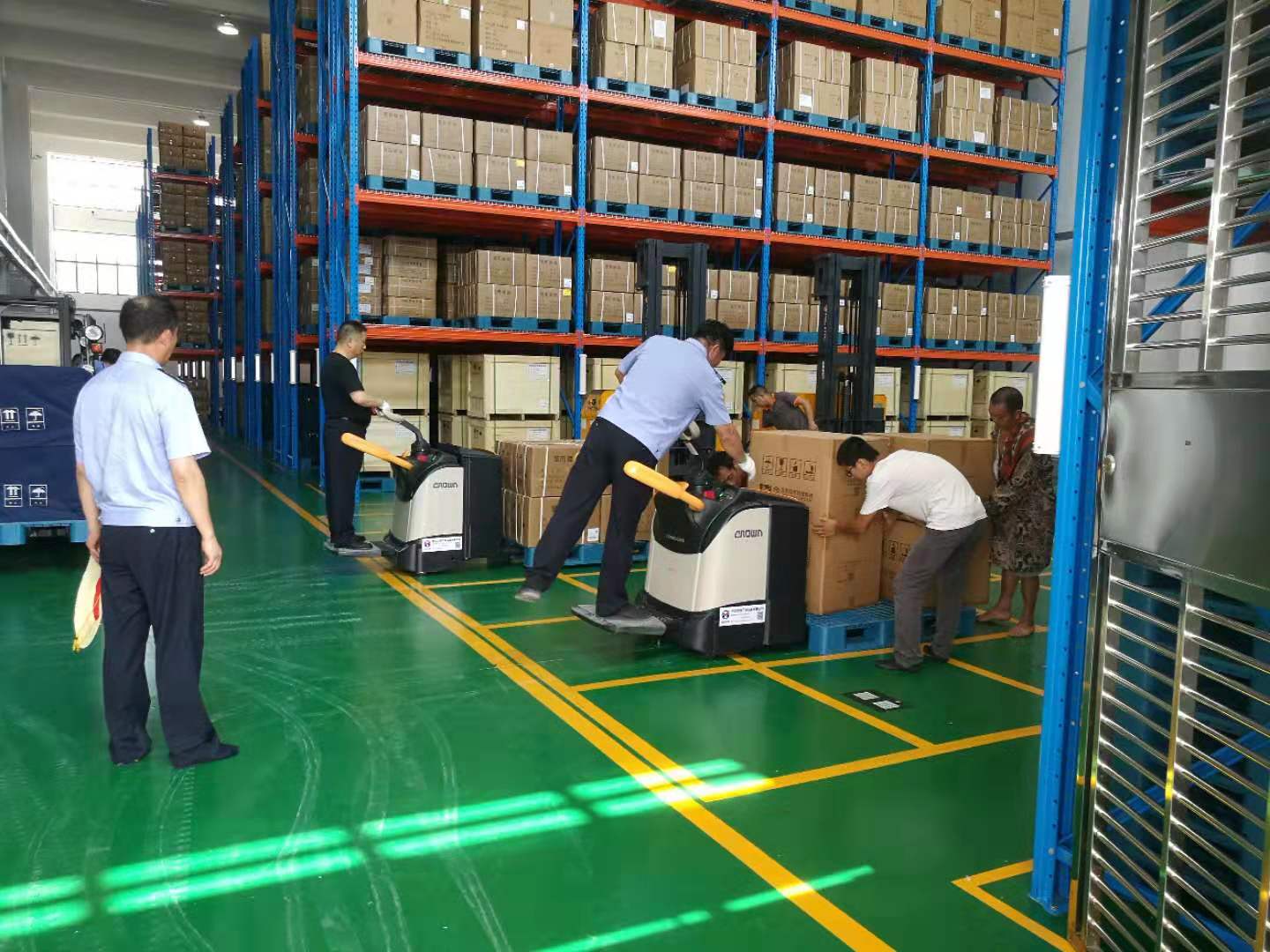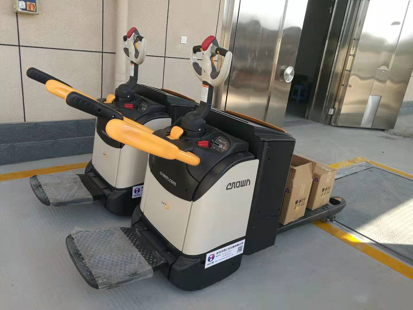 武汉中明工业设备两台科朗WT系列电动托盘车交车成功