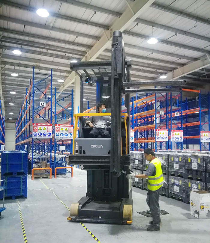 科朗TSP系列特窄通道三向叉车,可以实现在1.6-2米巷道内存储17米以上高度货架的托盘货物,托盘储位可增加30%-50%,同时所有的托盘都能够随时存取。特别适合在非常狭窄的通道及高位运作。