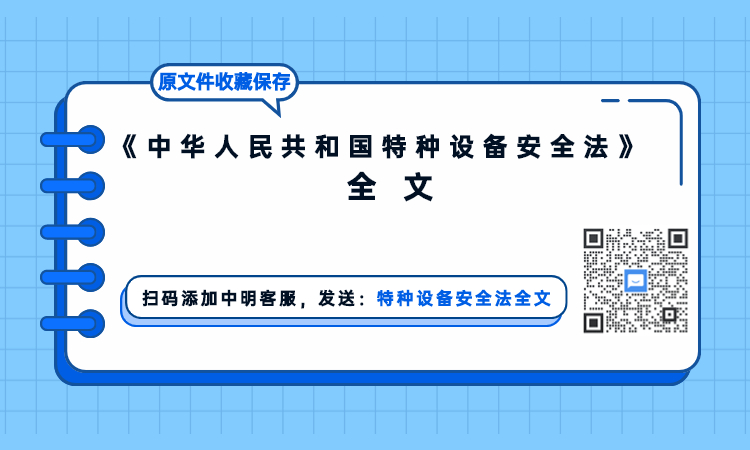 《中华人民共和国特种设备安全法》已由中华人民共和国第十二届全国人民代表大会常务委员会第三次会议于2013年6月29日通过,现予公布,自2014年1月1日起施行。